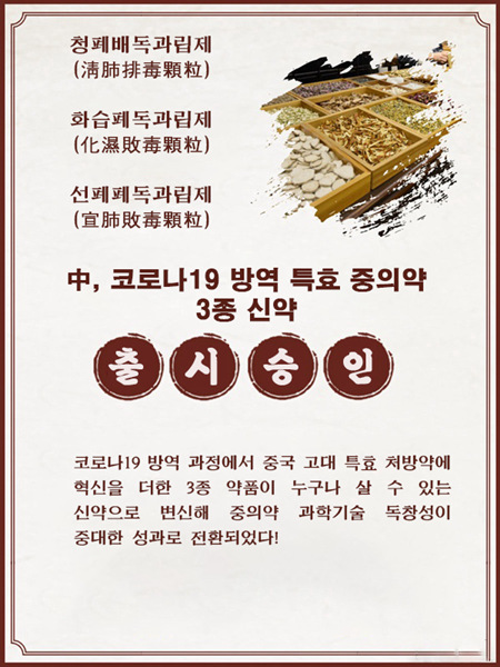 [열람중]중국 코로나19 방역 특효 중의약 3종 신약으로 승인