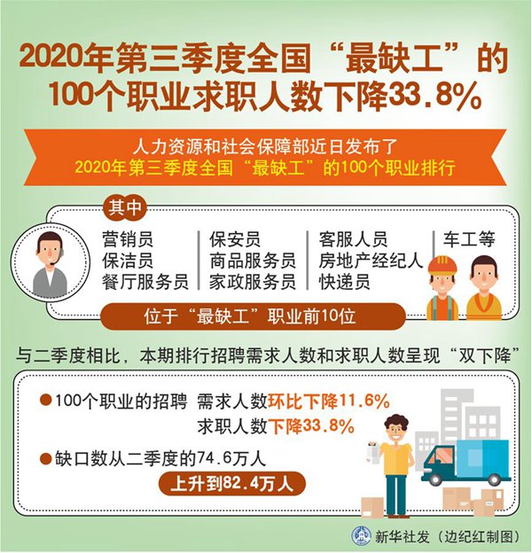 인력자원사회보장부(이하 인사부)는 최근 2020년 3분기 전국 ‘가장 부족한 일손’ 100개 직업 순위를 발표했다.
