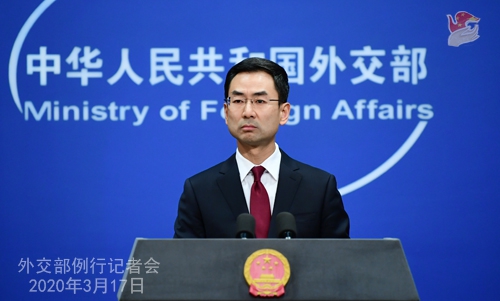 3월 20일, 겅솽(耿爽) 중국 외교부 대변인이 정례브리핑을 진행했다. 기자가 “18일, 트럼프 미 대통령이 기자회견에서 차이나바이러스와의 전쟁이라고 언급했다. 이런 발언은 인종주의라 볼 수 없고 신종 코로나바이러스가 중국에서 왔다는 말이다. 중국이 더 일찍 미국에 알릴 수 있었고 미국이 좀더 일찍 알았다면 더 많은 도움…(2020-03-23 12:24:00)