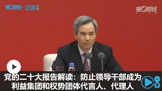 이날 중국공산당 중앙위원회는 기자회견을 열고 중국공산당 20차 전국대표대회 보고를 소개했다. 이 자리에서 왕 부장은 “부패 문제가 발생하는 토양과 조건이 존재하는 한 반부패 투쟁은 한시도 멈출 수 없고, 반드시 강한 태세를 유지하며 부패를 타파하고, 영도 간부가 이익집단 및 권력단체의 대변인과 대리인이 되는 것을 더욱 철저히 방지하겠다”고 강조했다.