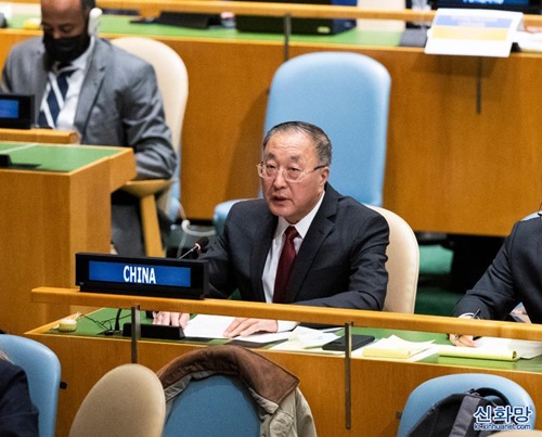 2일 유엔 제11차 긴급특별총회에 참여한 장쥔(張軍·가운데) 유엔 주재 중국대사. (사진/신화통신)유엔은 2일(현지시간) 제11차 긴급특별총회를 열고 관련국들이 제출한 우크라이나 사태에 관한 결의안 초안에 대해 표결을 진행했다. 장쥔(張軍·가운데) 유엔 주재 중국대사는 총회에 참석해 기권표를 던졌고 중국의 입장을 해명하는…(2022-03-04 12:49:24)