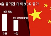 中 해관총서, 올 1~9월 중국 수출입 9.9% 증가 2018.10.26 차이나미디어DB/ 일러스트=최은성 미중간 무역전쟁이 격화하는 가운데서도 지난 달 중국의 수출입액이 모두 전망치를 웃도는 비교적 양호한 수치를 나타냈다. 올해 9개월 동안 중국의 상품 무역은 전년 대비 9.9% 증가한 22조 2천 8백억 위안을 기록…(2018-10-26 17:24:17)