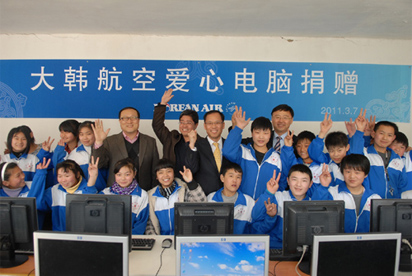 대한항공은 7일 오후(현지시각) 베이징 통저우구에 위치한 치차이 학교에 컴퓨터 63대를 기증했다. 치차이 학교는 전교생이 1200명 규모의 농민공 자녀 학교로 교육 환경이 열악해 교육용 컴퓨터가 386급 사양 30대가 전부이며 그나마 사용 가능한 컴퓨터는 8대에 불과하다. 이번에 대한항공이 기증한 컴퓨터는 자사에…(2011-03-10 10:15:59)