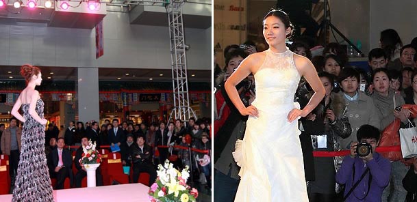 결혼정보회사 듀오가 설립한 웨딩컨설팅업체 듀오웨드가 업계 처음으로 한국 웨딩상품을 중국에 선보이는 한류 웨딩페어를 지난 12일부터 중국 칭다오에서 개최했다. 13일 칭다오시의 쇼핑 관광명소 바이리광장에서 칭다오시 정부의 후원을 받아 열린 '한중웨딩문화축제'에서 모델들이 웨딩드레스 패션쇼를 선보이고 있다.…(2011-02-17 09:54:00)
