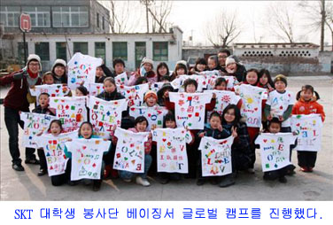 한편, 이번 글로벌 자원봉사 캠프에 앞서 중국 대학생자원봉사단 'SK 써니' 1기의 활동을 마무리하는 종결 발표회가 중국 베이징에서 있었다.