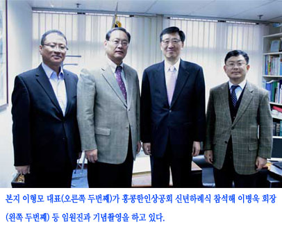 홍콩 한인상공인회는 10일 홍콩 하버그랜드 호텔에서 홍콩에서 활동하는 지상사 관계자 및 교민 기업인등 300여명이 참석한 가운데 신년하례회를 갖고 신묘년 새해의 힘찬 출발을 다짐했다. 이병욱 홍콩한인상공회 회장은 인사말을 통해 "홍콩 한인 상공인들은 지난해 여러가지 어려움을 극복하면서 독자적인 사무실을 마련하는 즐거움…(2011-01-13 10:24:47)