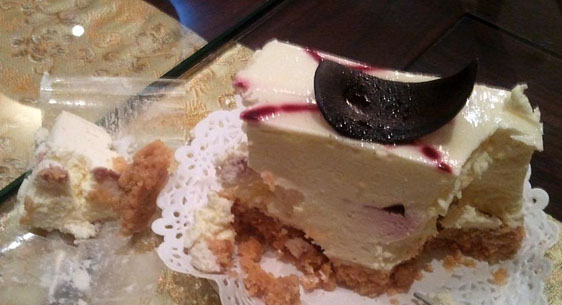 케익의 사진을 자세히 보면 케익을 담은 접시의 크기가 딱 케익 정도의 크기이다. 포크는 과일이나 찍어먹는 용도로 사용되는 작은 포크를 사용했다. 사진에서와 같이 작은 포크로 한 조각을 떼어내면 테이블 위로 떨어질 정도로 불안정하게 케익을 제공하고 있다. 케익을 떨어뜨리지 않고 먹을려면 신경을 집중해서 아주 조심스럽게 먹어야 한다.