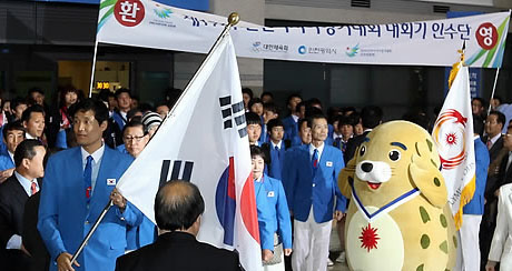아시안게임 4회 연속 종합 2위를 달성한 제16회 광저우 아시안게임 한국 대표팀 선수단이 개선했다. 이기흥 선수단장이 이끄는 대표팀 선수단 본단 100여 명은 28일 오후 인천공항에서 시민의 열렬한 환영을 받으며 귀국했다.(2010-11-28 21:51:57)