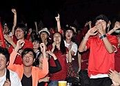 전반 초반 한국이 자책골을 허용한 뒤 추가골까지 내주자 응원단은 실망한 표정이 역력했으나 전반 종료 직전 이청용의 만회골이 터지자 냐오차오는 떠나갈 듯한 함성으로 후끈…(2010-06-18 09:15:13)