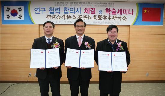한국한의학연구원은 3일 중국 저장(浙江)중의약대학 생물공정학원 및 저장익성균물발전유한공사와 연구교류·협력을 위한 양해각서를 주고받았다.