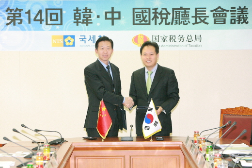 백용호 국세청장과 샤오지에(肖捷) 중국 국세청장은 3일 서울에서 '한·중 국세청장 회의'를 갖고 중국 진출 우리 기업에 대해 실무자간에 최근 타결된 이전가격사전 합의…(2009-11-05 09:09:32)