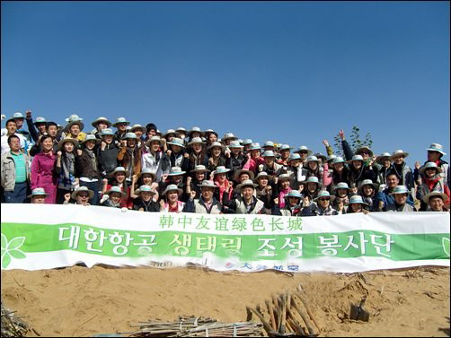 대한항공 직원들이 중국 네이멍구(内蒙古) 황사발원지를 찾아 나무 심기 봉사활동을 펼친다.