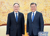 문대통령, 왕치산 중국 국가 부주석 접견王岐山会见韩国总统文在寅 5月9日,赴韩国出席韩新任总统尹锡悦就职仪式的习近平主席特别代表、国家副主席王岐山在首尔会见韩国总统文在寅。왕치산(王岐山) 중국 국가 부주석이 9일 시진핑(習近平) 국가 주석의 특별 대표로 윤석열 대통령 당선인 취임식에 참가하기 위해 한국에 왔다. 이날 왕 부주석은 문…(2022-05-10 21:01:16)