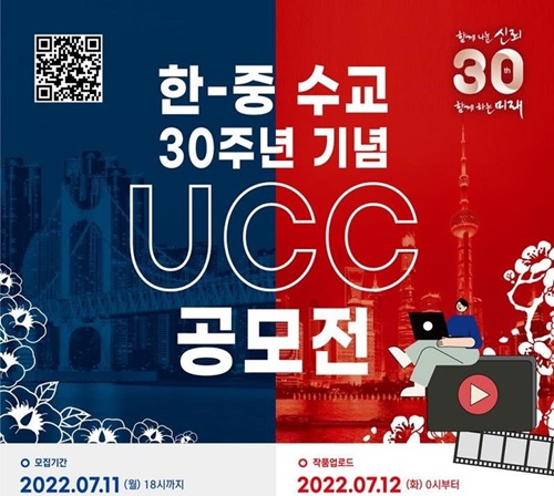 부산시는 한.중 간 민간 교류 활성화와 우호 증진을 위한 ‘한-중 수교 30주년 기념 UCC 공모전’을 다음 달 11일까지 진행한다.