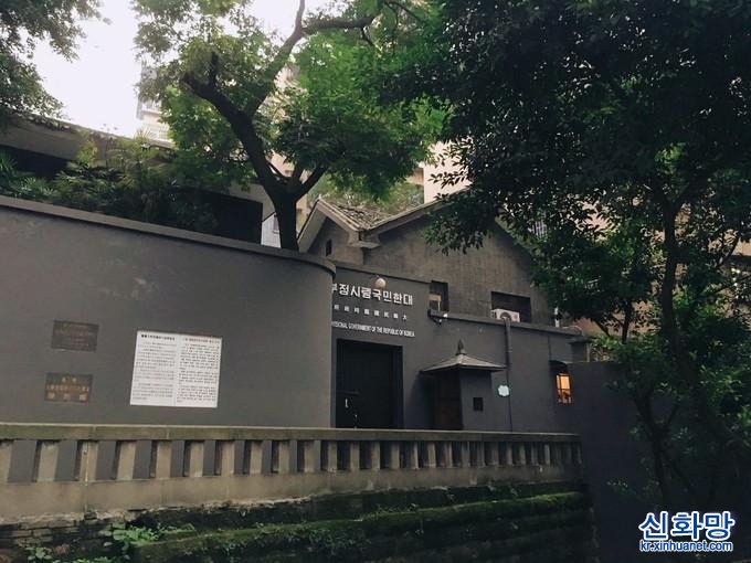 고층 건물이 늘어선 중국 충칭시 중심 위중(渝中)구. 청기와와 회색 벽돌로 지어진 건축물 하나가 눈길을 끈다. 건물 대문에는 한국어와 중국어, 영어로 '대한민국 임시정부'라고 쓰여 있다.