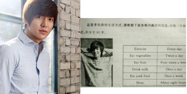중화권에서 높은 인기를 얻고 있는 배우 이민호가 중국학교의 영어시험 문제로 출제돼 주목받았다.