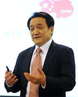 ▲ [자료사진] 서울대학교 경영학과 조동성 교수가 지난 2월 25일 베이징 장강상학원에서 '새로운 중국, 새로운 세계 표준'이란 주제로 강연하는 모습