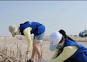 ▲ 현대차그룹의 글로벌 청년봉사단 단원들이 중국 네이멍구 차칸노르 지역에서 사막화 방지를 위한 초지 조성 작업을 하고 있는 모습