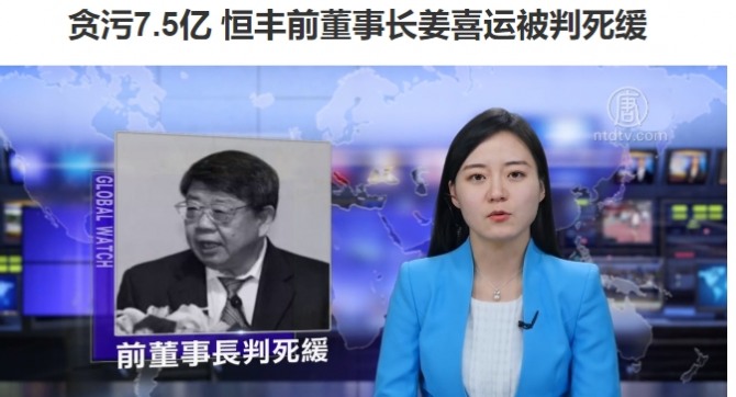 [열람중]장시윈(姜喜运) 전 헝펑(恒豊)은행장 사형선고, 횡령 등 혐…
