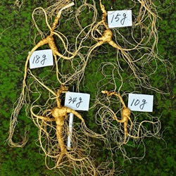 단위 / 무게 한세트 8뿌리/삼의 무게는 종이에 적음 야생삼씨를 심은 후 야생 그대로 자란 삼에서 씨가 저절로 떨어져 자란 야생삼인데 , 임하삼(林下参 )이라고도 한다/ 16 ~18년근