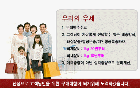 ☞한국구매대행8080->【무수수료,빠른배송,이벤트】 인기글 안녕하세요. DaiGou8080 입니다. 중국에서도 한국쇼핑몰 상품을 손쉽게 구입하고 싶거나 해외배송만을 하고 싶은 경우가 가끔 있으시죠? 고객님이 구매하고 싶어하는 한국상품을 제일 빠른 시간에 주문하여 저렴하고 안전하게 빠르게 구매/배송대행해드리고 있습니다. 1. 다양한 상품카테고리•화장품,미용,렌즈용품…(2010-05-14 12:27:22)