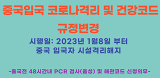 [열람중]2023년 1월8일부터 중국 입국규제완화/코로나 시설 격리해…