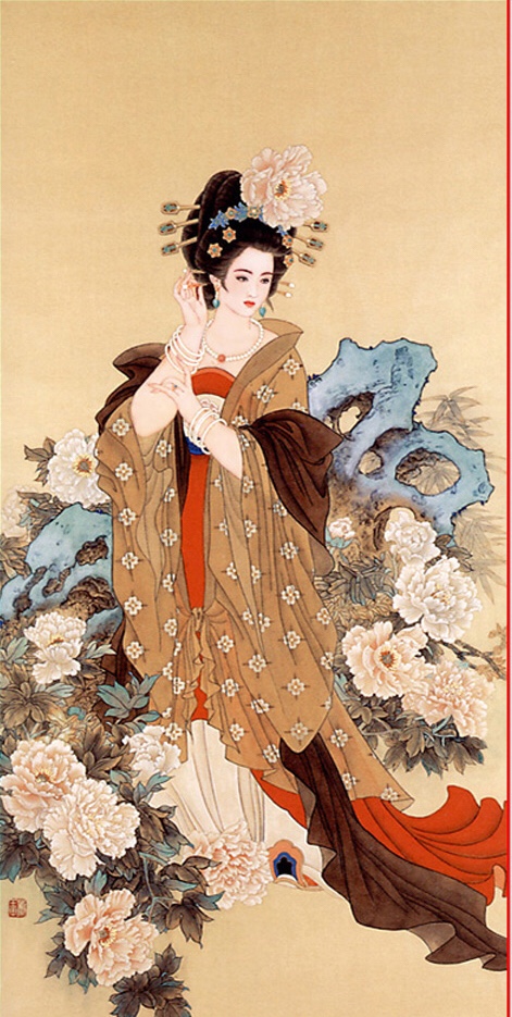 당초 양옥환은 현종의 아들 수왕壽王 이모李瑁의 비로 뽑혀 궁중에 들어왔다. 그러니까 현종의 며느리였다. 그런데 그녀의 미모에 반한 현종이 그녀를 차지할 요량으로 일단 도관道觀의 여도사로 보냈다.(여도사 노릇을 할 때 호를 태진이라 했다.) 어느 정도 시간이 흐르자 현종은 그녀를 불러 귀비에 책봉했다. 그 해가 천보 4년인 745년이다.(이 때 그녀의 나이 서른이었고, 현종은 60을 넘겼다.) 이후 그녀의 세 자매도 각각 한부인, 괵부인, 진부인으로 책봉되었다. 사촌 오라비 양국충楊國忠도 조정에 참여하여 재상까지 승진하면서 조정 대권을 독차지함으로써 양씨 집안이 천하에 위세를 떨쳤다. 이들은 현종을 깊디깊은 향락 속으로 빠뜨렸다.