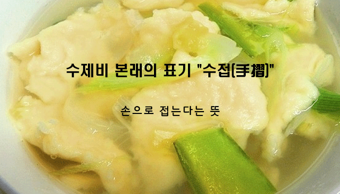 수제비는 본래의 표기가 "수접(手摺)"이었습니다.