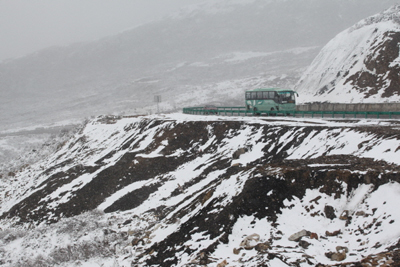 흩날리는 눈발을 맞으며 한걸음씩 발을 내디뎠다. 점차 고도가 높아지면서 공기가 희박해져 숨이 차고 어지러웠다. 들고 온 산소통으로 간간히 산소를 공급해 어지러움을 해소했다. 관광객을 위해 무료로 산소를 제공해주는 휴게소도 곳곳에 눈에 띄었다.