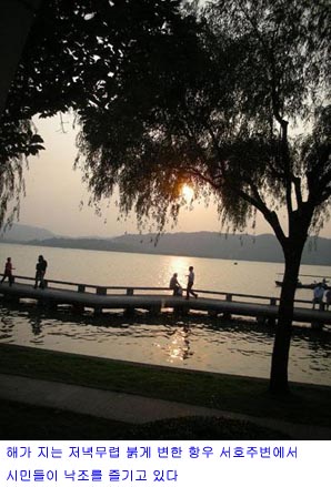 관광책자에는 "맑게 갠 날 호수는 비오는 날 호수보다 못하고 비오는 날 호수는 밤의 호수보다 못하다. 서호의 야경은 사람의 눈과 마음을 기쁘게 하고 도취하게 한다"고 했다. 공안들이 곳곳에 배치돼 있어 안심하고 호수를 둘러보았다. 밤이 깊어감에 따라 쌀쌀한 기운이 몸을 감싸