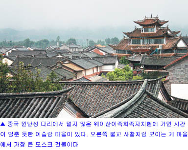 윈난은 화해와 포용이 넘치는 곳이다. 25개 소수민족이 뒤섞여 살지만 아귀다툼은 없다. 백족(白族)은 본주사당에서, 회족(回族)은 모스크에서, 나시족은 동파교 만신원에서 각자 신앙의 자유를 누린다. 도교와 불교, 전통종교가 서로를 배척하지 않는다. 이번 여행 가이드를 자임한 한국학연구소의 박현 소장은 "윈난 소수민족의 언어에는 '그러나' '아니오'라는 단어가 거의 쓰이지 않는다"고 말한다. "도둑질하지 말라"는 말 대신 "남의 것을 아껴주라"고 말한다는 것이다. 곳곳에 흩어진 소수민족 마을을 하나로 이어주던 차마고도는 화해의 통로가 됐다.