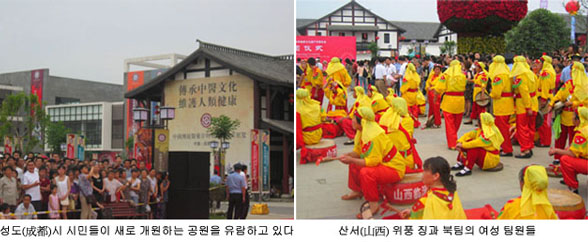 세계 최초의 무형문화재 보호와 연구, 전시를 위주로 한 중국국가무형문화재 공원이 개원식을 했다. 국가무형문화재공원은 사천(四川)성 성도(成都)시에 위치해 있으며 개원식과 함께 "무형문화재축제"를 개최했다. 중국국가무형문화재공원의 개원에 즈음해 국제 국내의 70여개 기관, 단체가 공원에서 1천여가지의 무형문화재를 전시했다.…(2011-01-27 09:20:05)