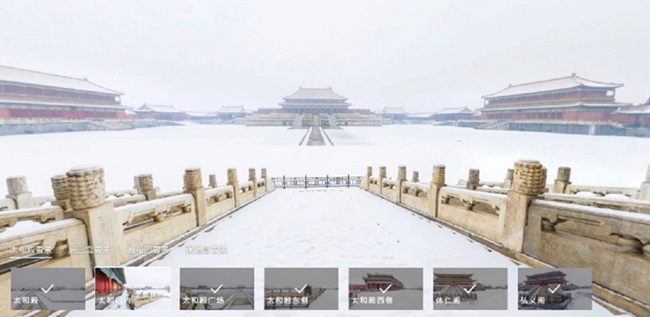 이런 점에서 온라인으로 어떤 공간에 실제로 간 것처럼 느끼게 해주는 서비스는 새로운 경험을 선사해준다. 일반적인 평면 사진을 업로드 해놓는 것이 아니라 각 건물을 360도에서 촬영하고 신기술을 사용해 화면을 한데 합쳐 놓아서, 화면을 드래그 하며 자유자재로 공간을 둘러볼 수 있다. 북경에서는 눈 내리는 모습을 보기 힘든 편인데, 이 가끔 오는 눈이 내린 자금성의 모습은 참 아름답다고 한다. 이런 모습 또한 온라인으로 볼 수 있으니, 외출이 어려운 현 상황에서 하얀 눈이 소복히 내린 고궁 산책을 하다보면 새로운 방식의 현장감을 느낄 수 있다.