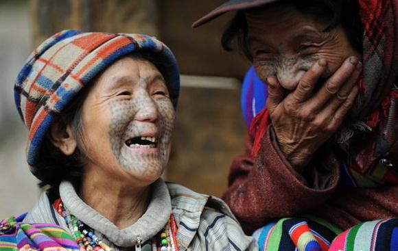 운남성(云南省)의 두룽족, 누족(独龙族怒族)자치현에는 얼굴 문신 여인들이 있다. 소녀로 태여나 12살~13살이 되면 정혼을 하는데 참대바늘로 얼굴을 찌르고 부뚜막 솥밑(锅底) 검대기로 문신하여 정혼의 영원한 기념으로 나비 도안을 얼굴에 문신하였다고 한다.. 이런 얼굴문신은 1967년…(2009-08-03 10:14:23)
