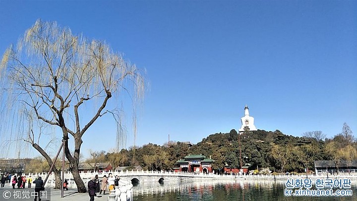 3월11일, 베이징은 화사한 날씨를 보였다. 푸른 물과 하늘이 어우러진 베이하이 공원은 봄기운이 완연했다.