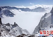 하늘과 맞닿은 장백산천지의 겨울철 모습