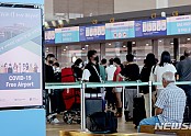 11월 15일 인천국제공항 2터미널을 통해 입국한 싱가포르 관광업계 및 미디어 팸투어단이 환영을 받으며 손을 흔들고 있다. 앞줄 오른쪽 첫번째는 안영배 한국관광공사 사장. 한국-싱가포르 간 여행안전권역(트래블 버블)이 이날부터 시행됨에 따라 백신 접종을 완료한 양국 국민들은 격리부담 없이 여행을 할 수 있다. …(2021-11-16 14:26:01)