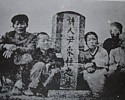 시인 윤동주 묘소에서의 가족들. 묘비 오른쪽 여성 윤혜원여사.