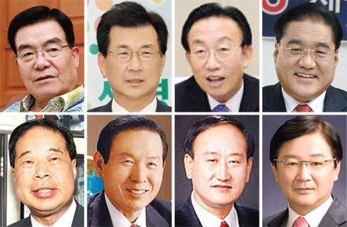 왼쪽부터 우근민 제주도지사, 이시종 충북도지사, 김관용 경북도지사, 최명현 제천시장, 성백영 상주시장, 문동신 군산시장, 김충석 여수시장, 권영세 안동시장
