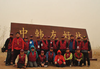 이날 《중한황사방지식수단》 60여명 자원봉사자들은 도합 3000여그루의 나무를 심었다.