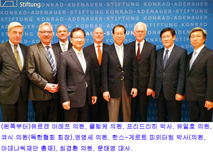 독일 베를린에서 ‘유럽의 냉전극복과 한반도의 전망’이라는 제목으로 통일 과정에서의 한국과 독일 정부 전략을 비교하는 컨퍼런스가 열렸다. 안희숙 민주평통 독일지역 자문회의 간사는 “3월 21일 콘라드 아데나워 재단이 주최하는 전문 컨퍼런스가 개최됐다”고 전했다. 이번 컨퍼런스에서는 한스-게르트 푀터링 콘라드 아데나…(2011-04-07 10:09:05)