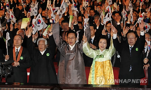 아울러 이 대통령은 "함께 잘사는 국민, 따뜻한 사회, 강한 나라, 선진일류국가가 바로 우리의 꿈"이라며 "저는 선진일류국가의 윤리적.실천적 인프라인 공정사회 구현에 최선을 다할 것"이라고 말했다.