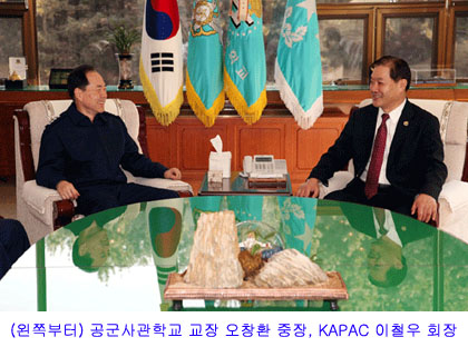 한인공공정책위원회(KAPAC, 회장 이철우)와 한국 공군사관학교가 공동 진행하는 ‘재미동포자녀 파일럿 체험 프로그램’이 전년 대비 두 배 규모로 늘려 실시된다. 이철우 회장과 KAPAC 임원진은 지난달 공군사관학교를 방문, 신임 교장 오장환 중장을 예방하고 ‘2011년 재미동포 자녀 파일럿 체험 프로그램’에 대한 세부계획…(2011-02-17 09:37:39)
