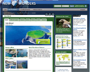 이번 선정은 스위스의 비영리재단 뉴세븐원더스(New7Wonders)'가 주관하는 행사로, 2007년 시작해 1,2차 예선을 거쳐 제주도가 28개 결선후보 중 1곳으로 올라왔으며, 현재 전체순위 15~20위를 오르내리고 있는 것으로 알려졌다.