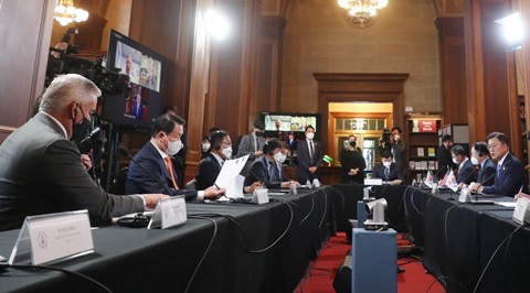 비즈니스라운드테이블은 백악관 행정동에서 개최됐다. 이번 행사는 반도체, 배터리, 바이오 등 핵심산업 공급망의 연계를 통해 복원력 및 안정성을 강화하고 양국 간 교역·투자를 확대하는 등 호혜적 경제협력을 논의하기 위한 목적으로 열렸다.