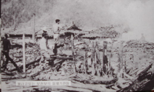 놈은 총알에 넓적다리를 맞아 도망칠래야 도망칠수 없게 되자 시체더미속에 죽은체하고 있었던 것이다. 놈을 발견했던 농민은 꽁무니에 차고있던 도끼를 빼들었다. “윽”하는 소리와 함께 악질주구의 대가리가 땅우에서 딩굴었다. 짐군들은 모여들어 몽둥이와 돌로 그놈의 시체를 죽탕을 만들어놓았다.