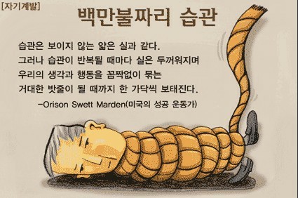 습 관 인간을 성공으로 이끄는 가장 강력한 무기는 도전과 배짱과 끈기와 피나는 노력 등여러가지가 있지만 제일 중요한 것은 바로 습관이다. 왜냐하면 인간은 습관의 노예이기 때문이다. 습관이 천성이라도 말이 있는데아무도 이 강력한 폭군의 명령을 거스리지 못한다. 그러므로 다른 무엇보다도 내가 지켜…(2019-12-10 23:48:39)