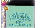 목표을 정하면 인기글 목표을 정하면 방향을 정확히 설정하고 빨리 갈수 있는 지름길을 찾기에 노력해야 한다 어찌보면 지름길이란 기회일수 있는데 , 기회는 기다리지만 말고 창조해야 한다 그리고 무엇보다도 아무리 힘들어도 '결코&…(2009-09-23 02:47:15)