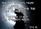 내가 좋아하는 격언 ~2 인기글 ♡뭐든지 쉽게 흥분하지 마라. 그것은 자신의 작고 빈 가슴을 내보이는 것이다. ♡항상 자신을 낮추어라. 누군가 나를 늘 주시하고 있다. 높이 있는 것은 금방 떨어지기 쉬워도 낮은 곳은 떨어질 위험은 없는 것이다. ♡ 모든 실패와 작은 실수까지도 자신이 만드는 것이다.(2019-05-07 09:53:08)