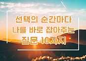 선택의 순간마다 나를 바로 잡아주는 질문  인기글 선택의 순간마다 나를 바로 잡아주는 질문 10가지 우리는 매 순간 선택을 하며 살아왔고 선택의 결과가 바로 지금의 내 모습입니다. 보다 나은 내가 되기 위해, 보나 나은 인생을 만들기 위해, 당신의 선택은 그 무엇보다 중요합니다. 선택의 순간마다 나를 옳은 방향으로 이끌어줄 수 있는 10가지 질문을 소개합…(2019-03-27 23:16:06)